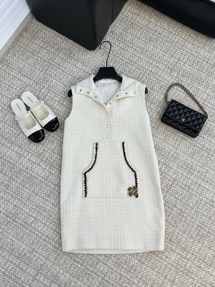 一见倾心!Chane*白色连帽马甲裙,手工钉珠的浪漫,进口料羊毛面料