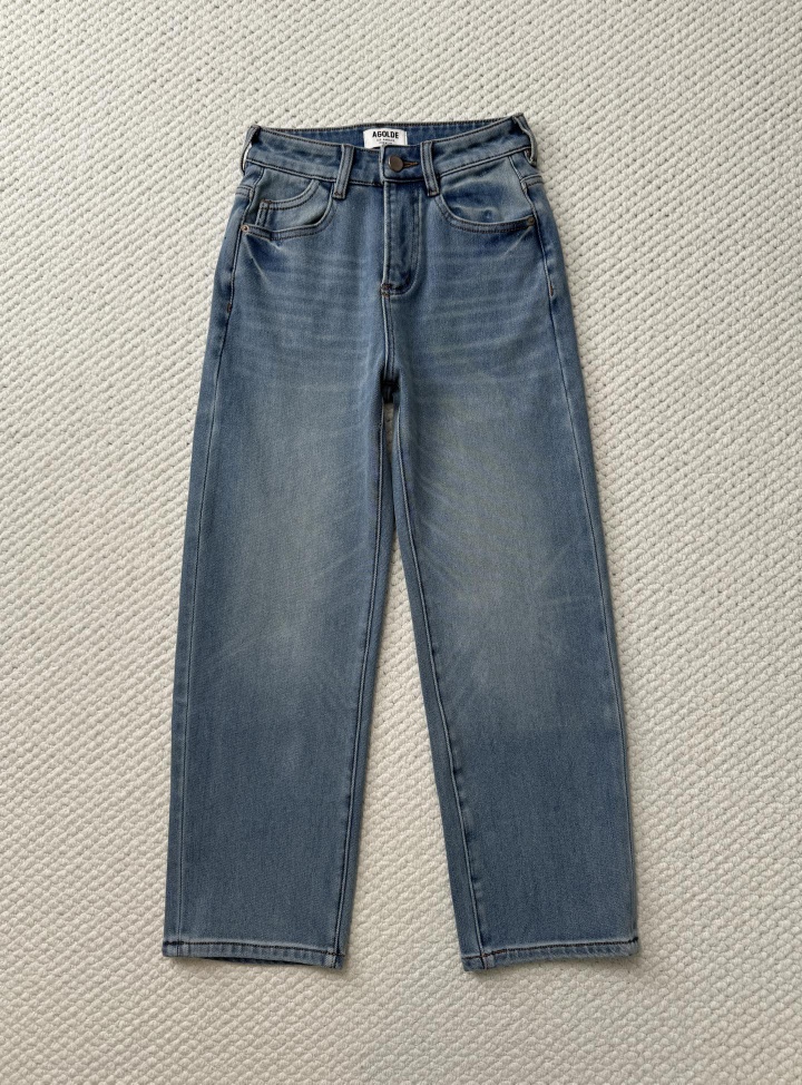 AGOLD*纯圆女士秋冬简洁经典小直筒九分加绒牛仔