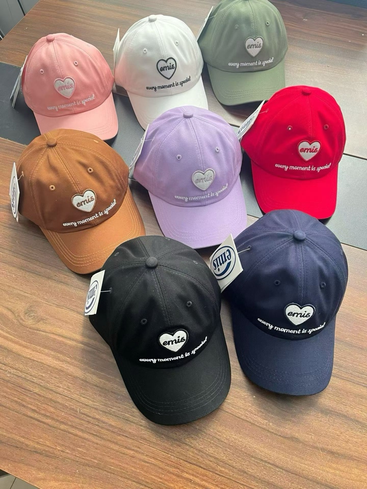 韩国emis心形标志棒球帽粉色休闲百搭大头围男女同款 黑色 白色 藏青 咖色 紫色 红色 军绿 粉色 八色入~