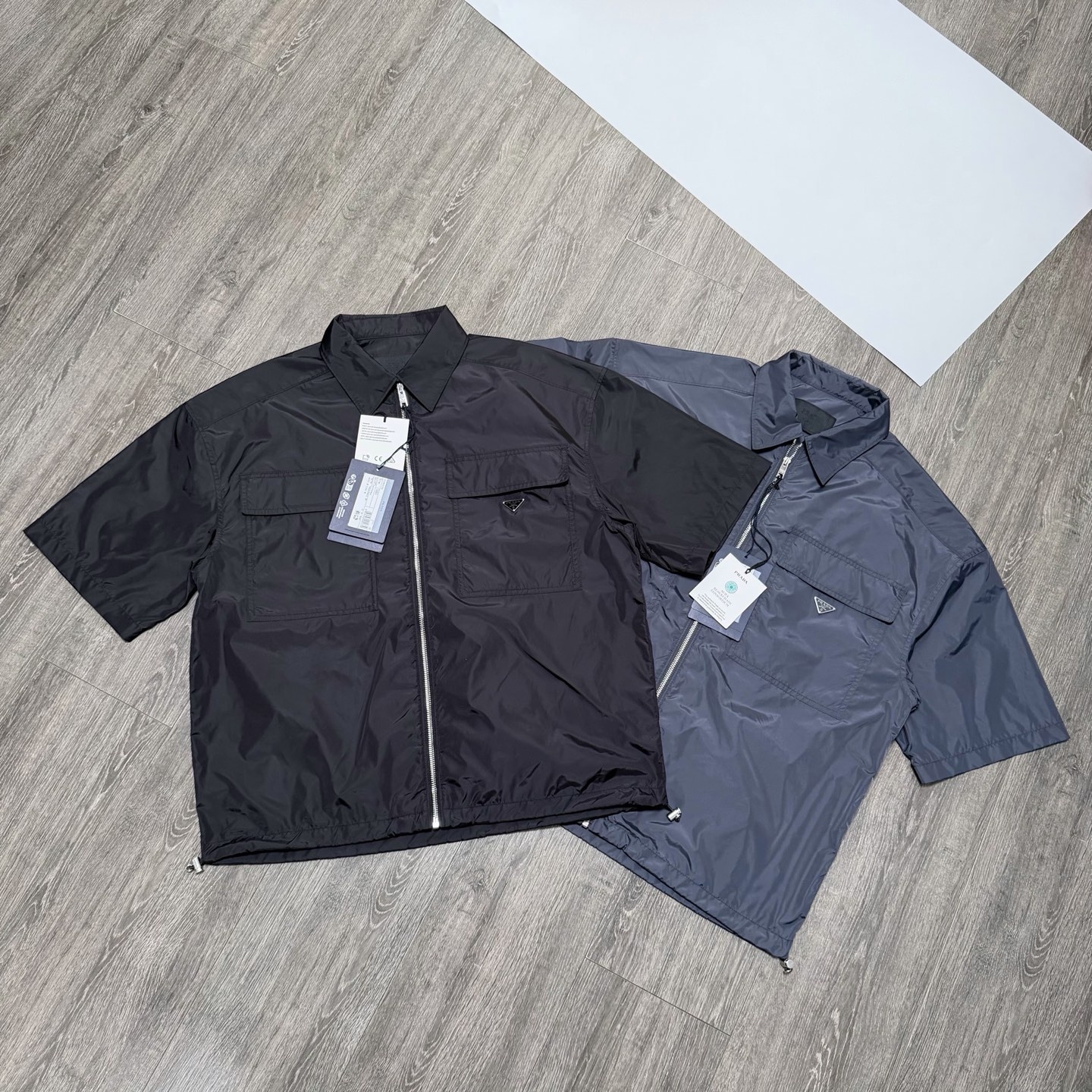 官网柜台更新!26新色新工艺 新款小号珐琅三角牌 取消皮底 超轻尼龙降落伞布短袖衬衫 轻薄款 叠穿外搭均 公价13200 经典黑色F0002 新色铁灰色F0BJ9 大口袋装饰 金属拉链开襟 原版韩国制降落伞尼龙 TAT五号金属拉 ...