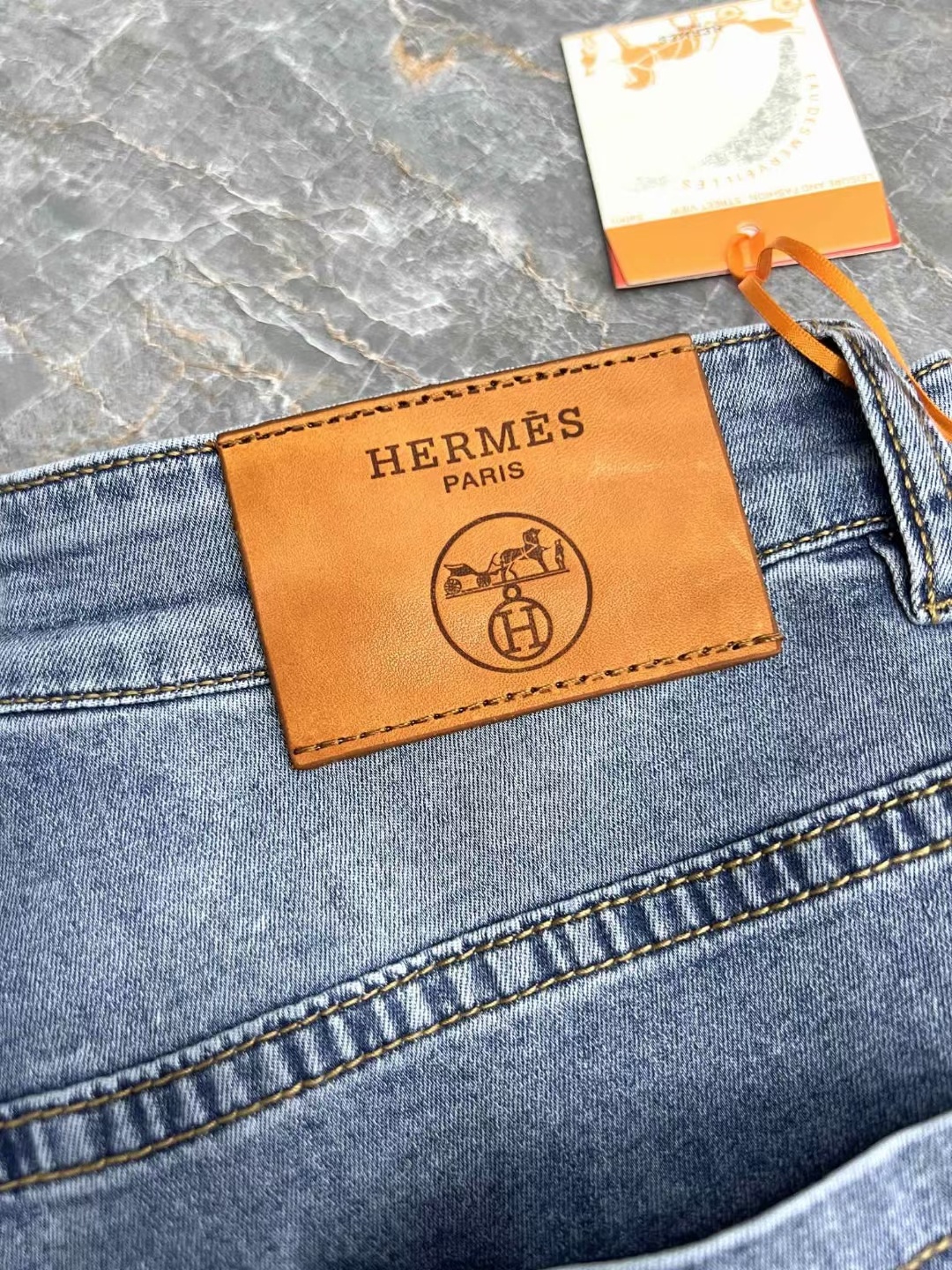 爱马*男士高级局部磨白风格系列浅