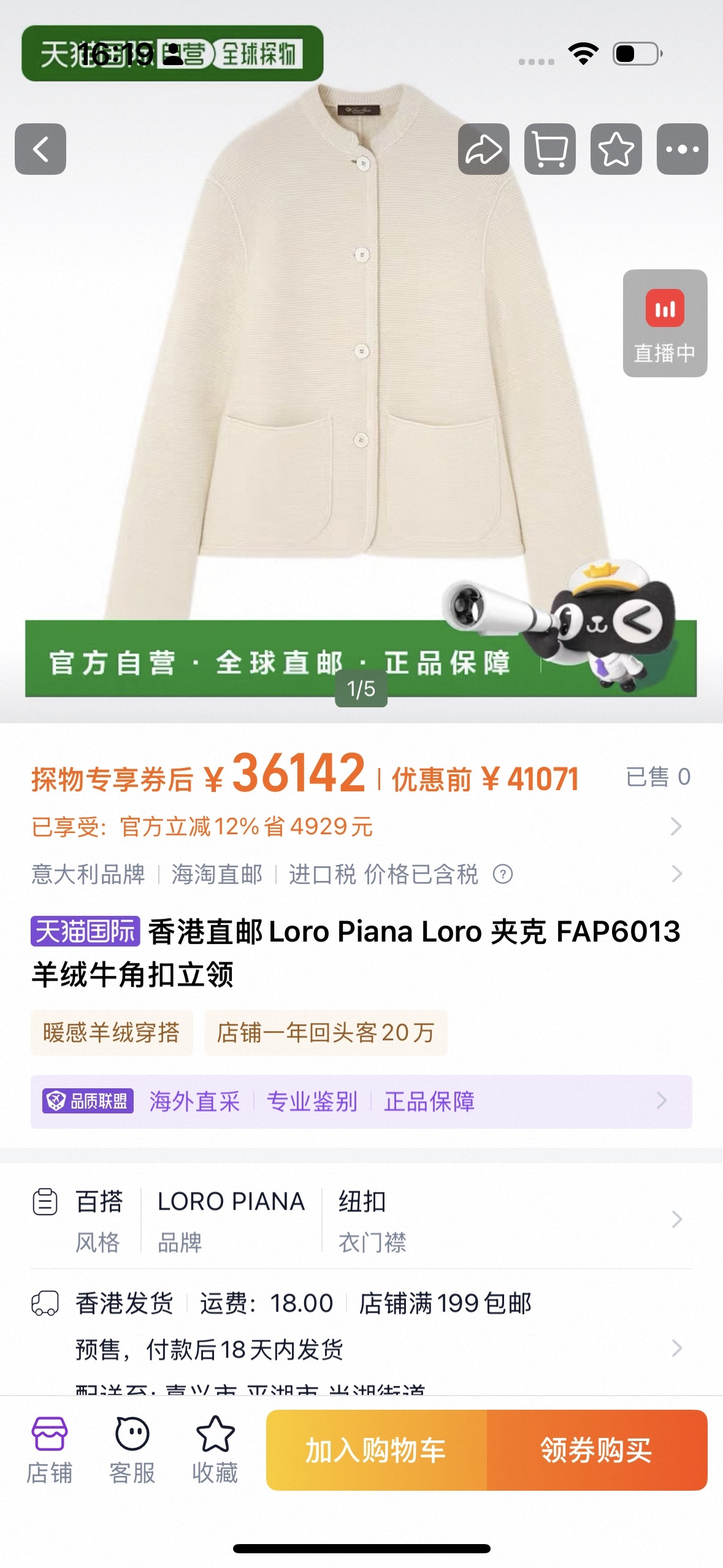 l0ro piana,立领双贴袋羊绒Spagna夹克。 LP标志性的Spagna