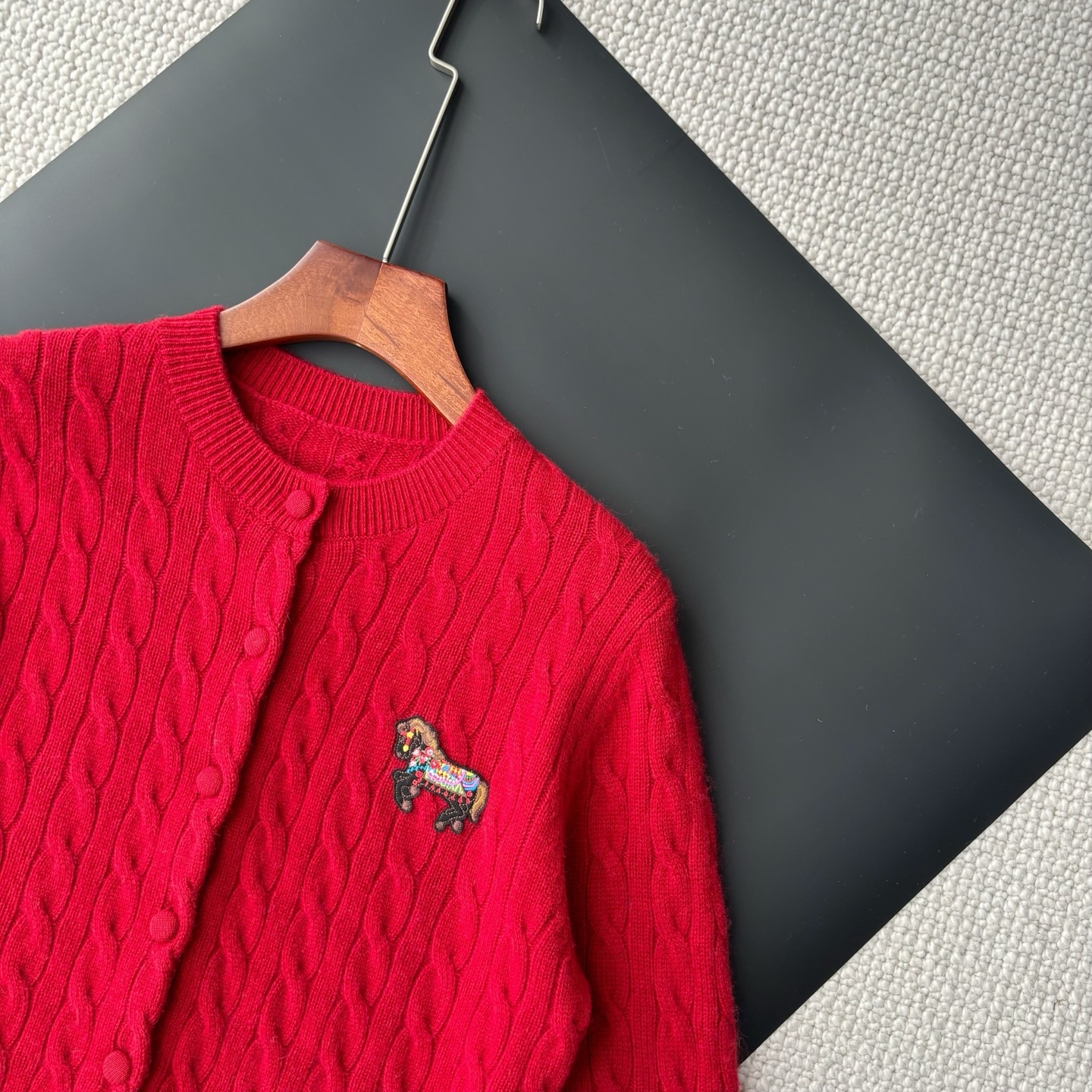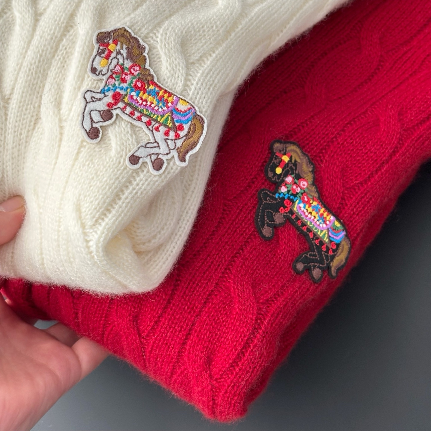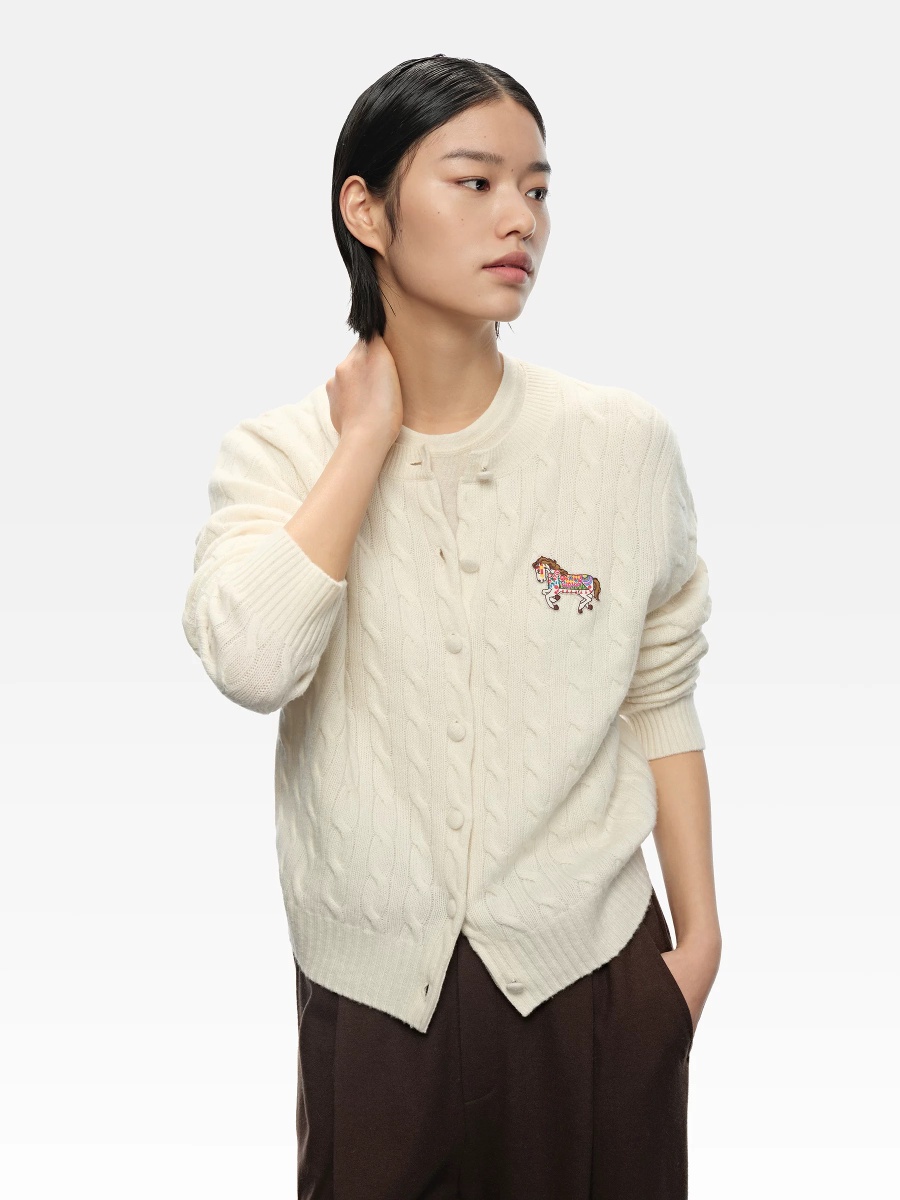 Erd0s,25秋冬马年生肖系列绞花羊绒开衫。