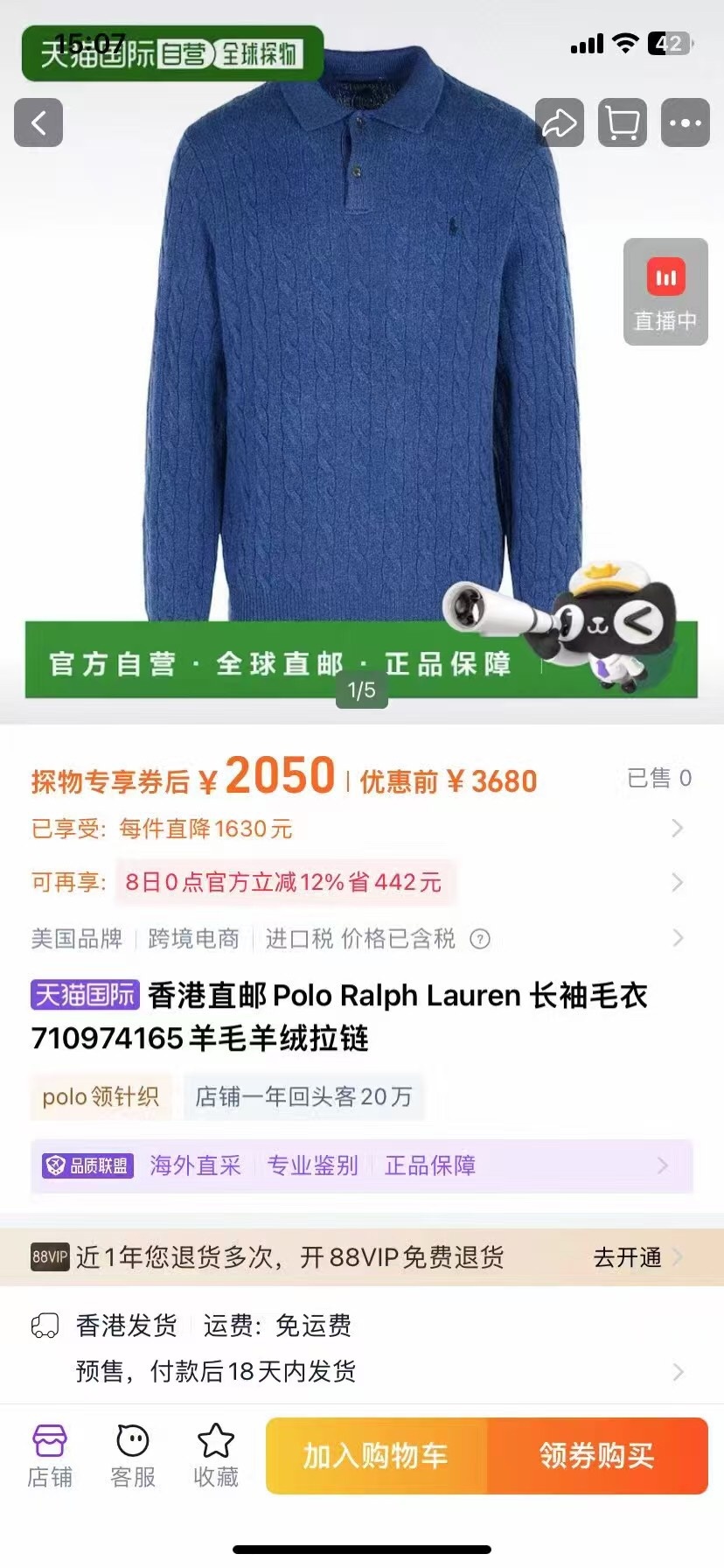 RL男款秋冬小马标两扣羊毛羊绒麻花翻领毛衣,万年经典之 ...