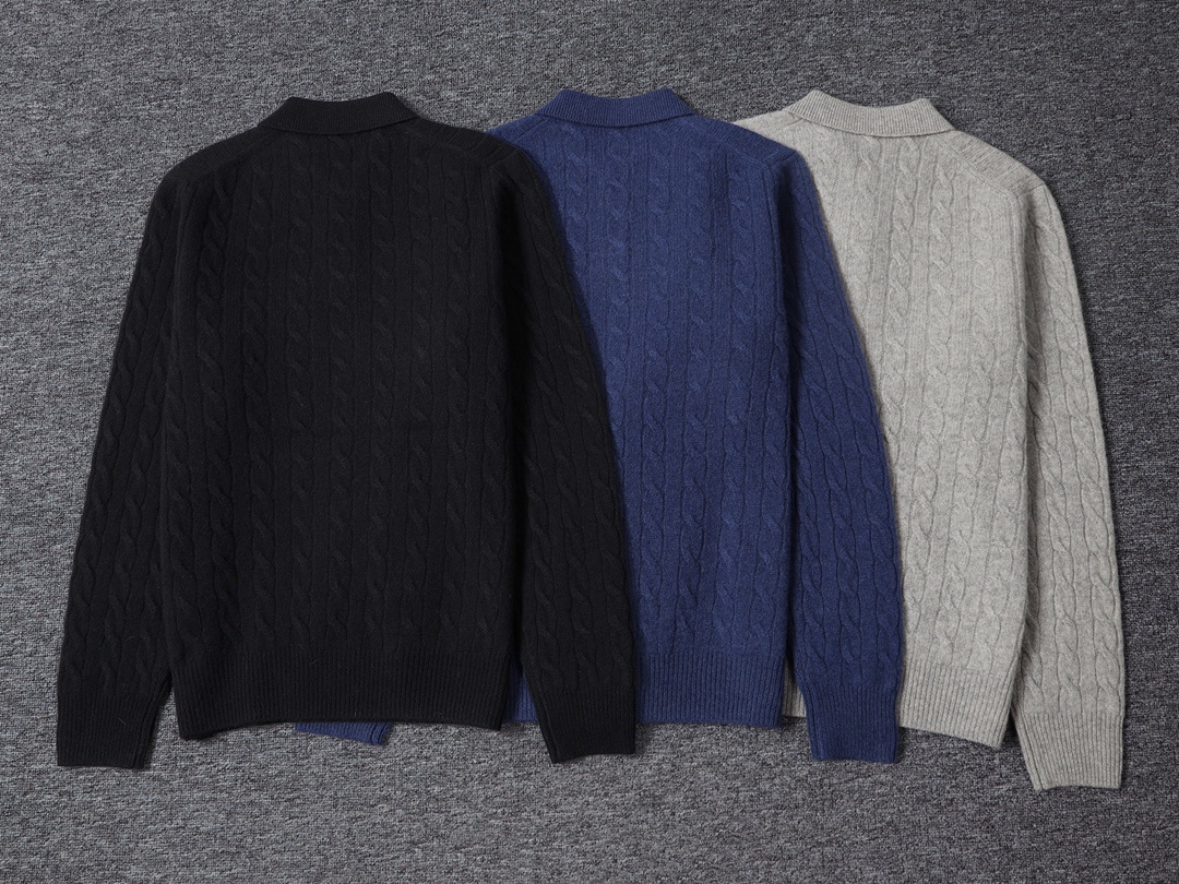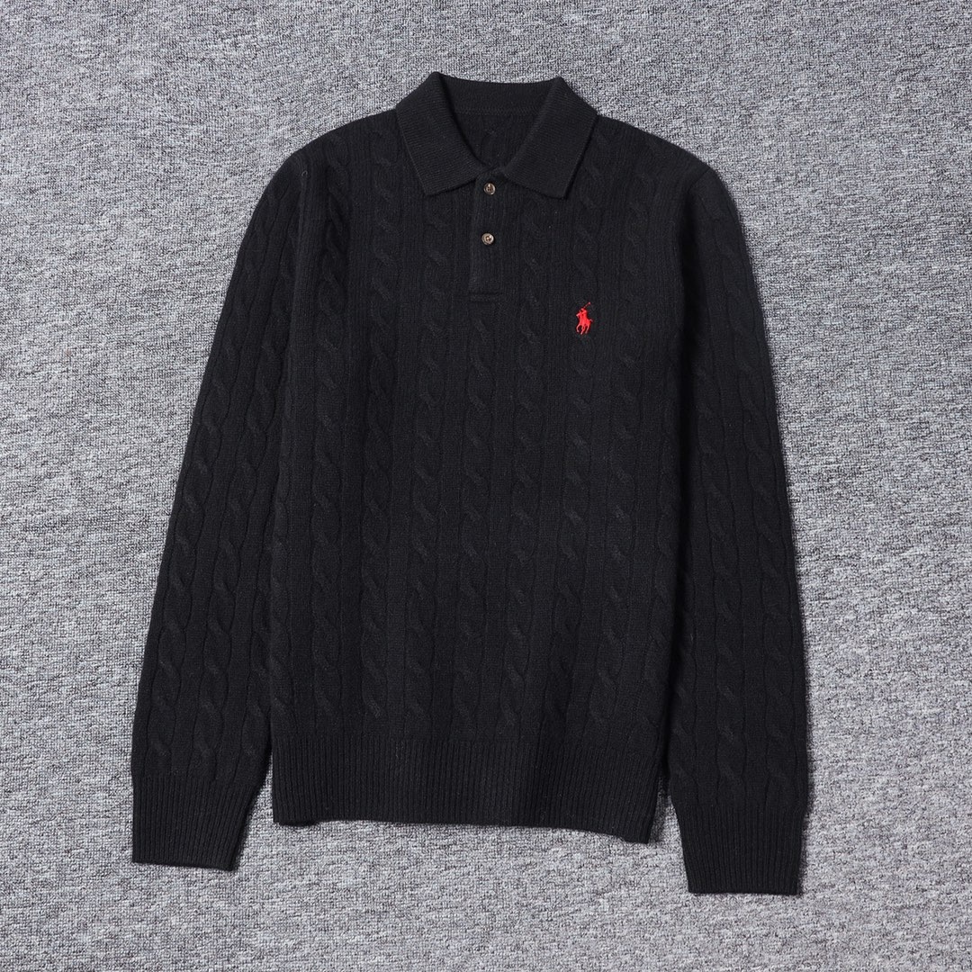 RL男款秋冬小马标两扣羊毛羊绒麻花翻领毛衣,万年经典之一!!