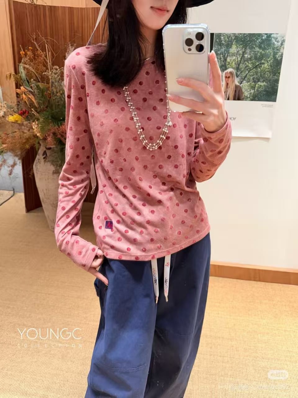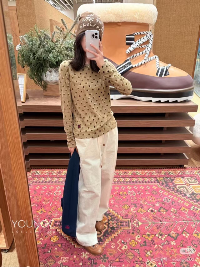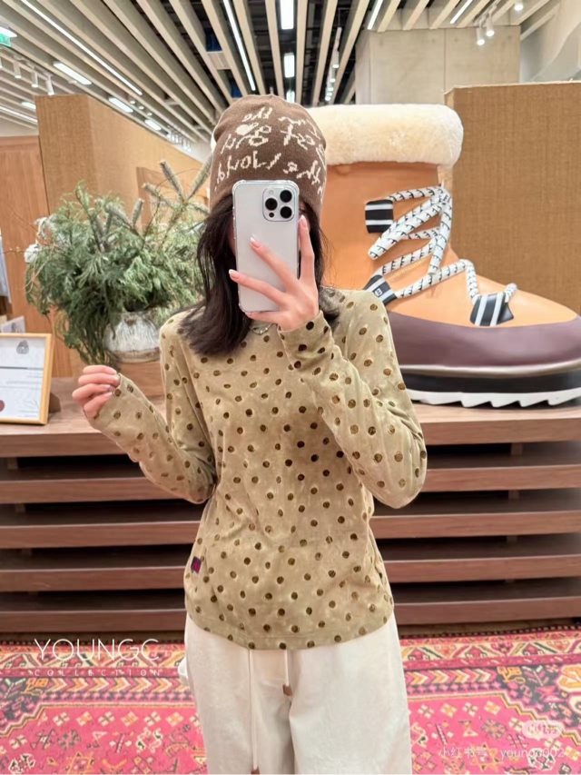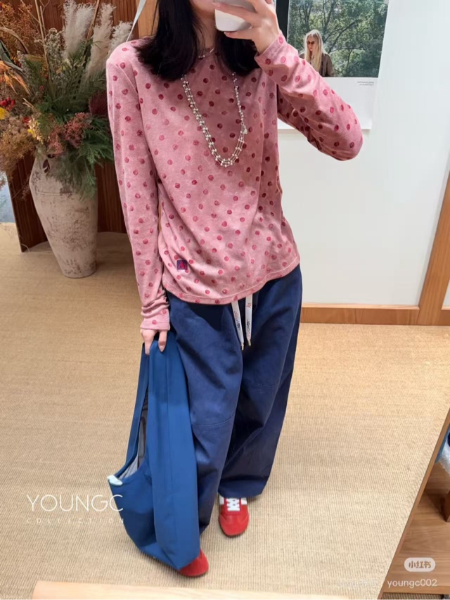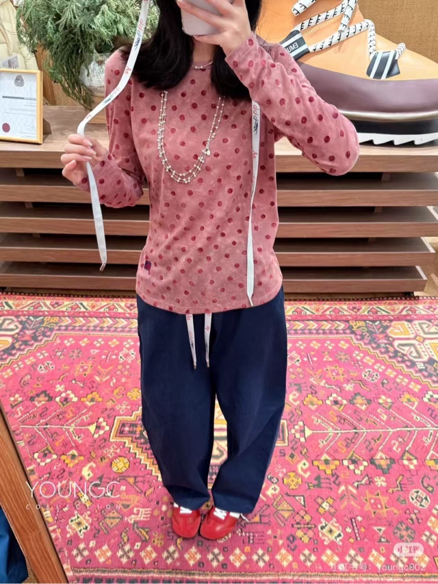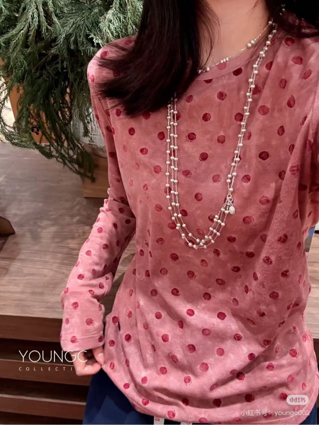 NATURAL HOTEL【植绒波点合体针织长袖T恤】