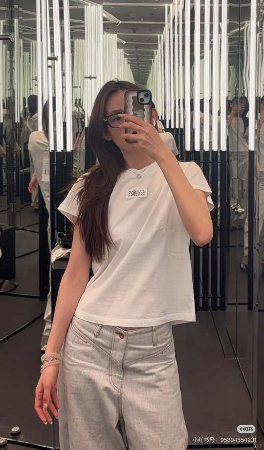 大表姐赵今麦高海宁同款mm6T恤,白色粉色两个色