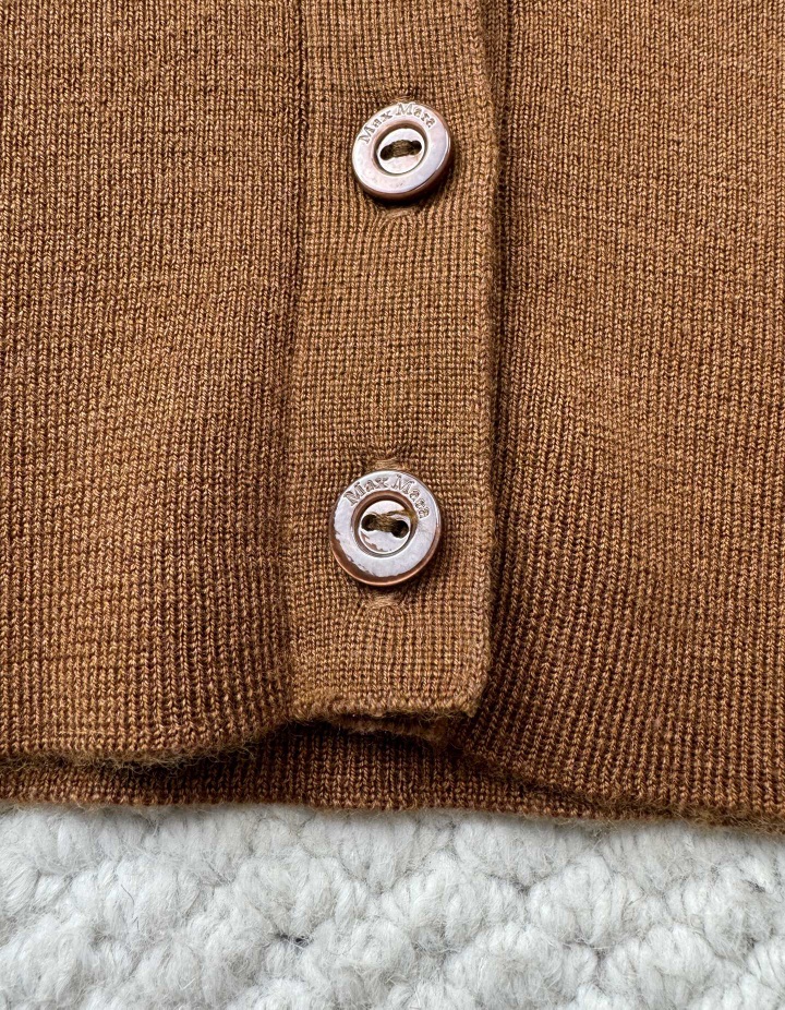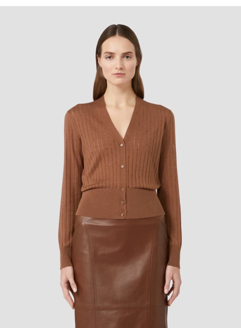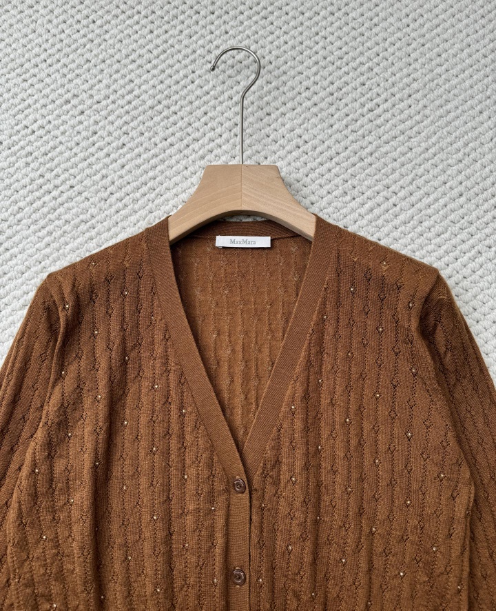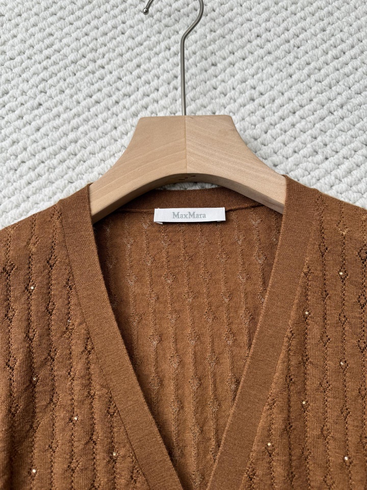 MA*MARA女士春夏V领单排扣镂空烫钻短款针织开衫