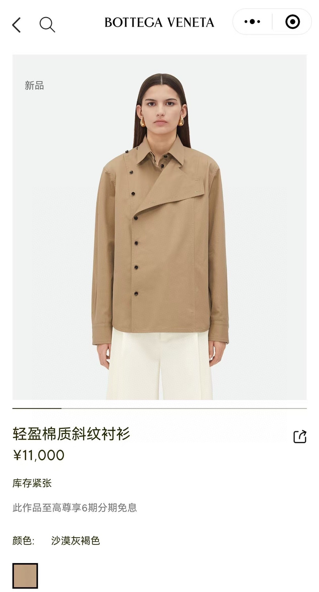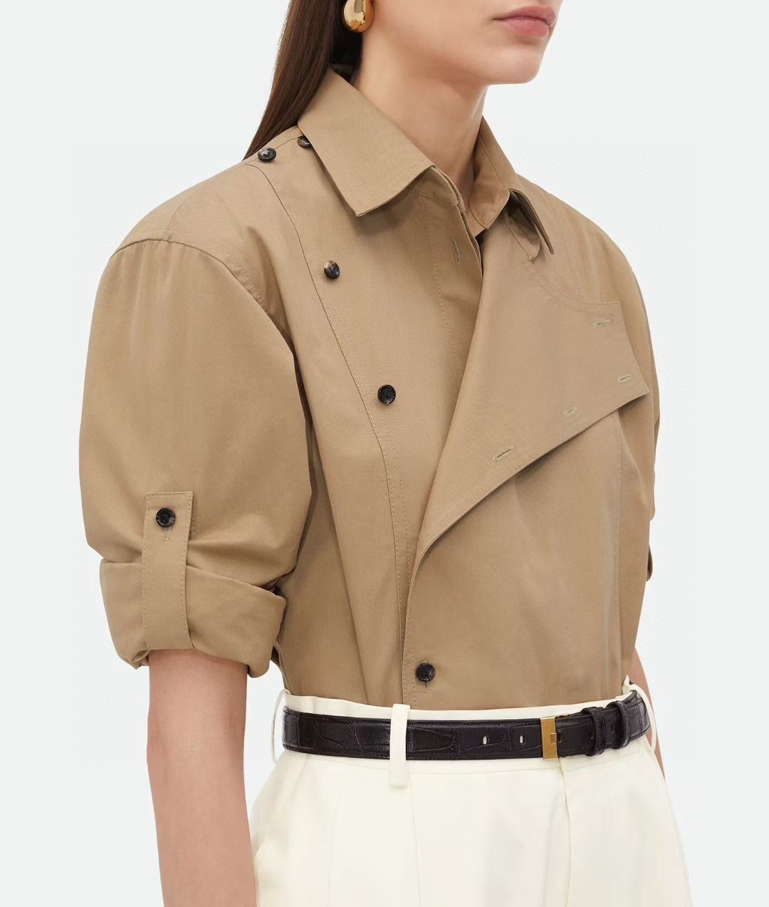Bottega Venet… 春夏最新品|风衣式不对称纽扣高工剪裁多功能穿 衬衫