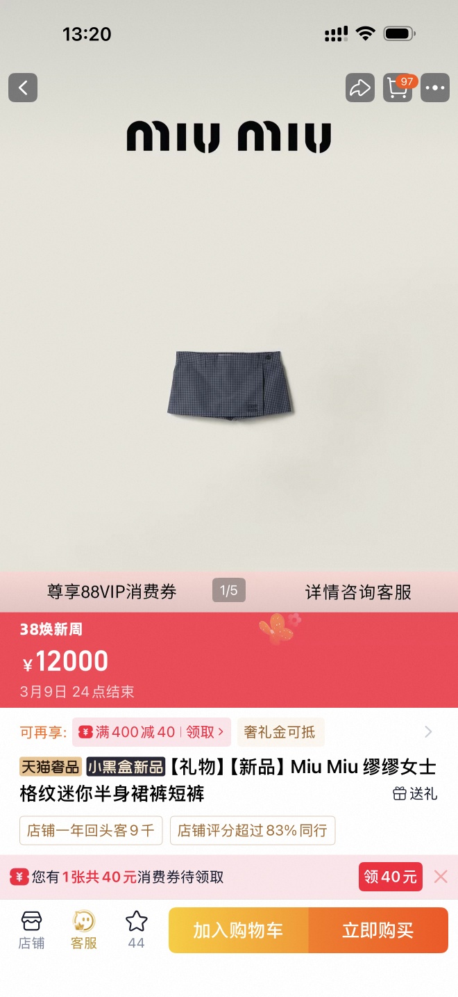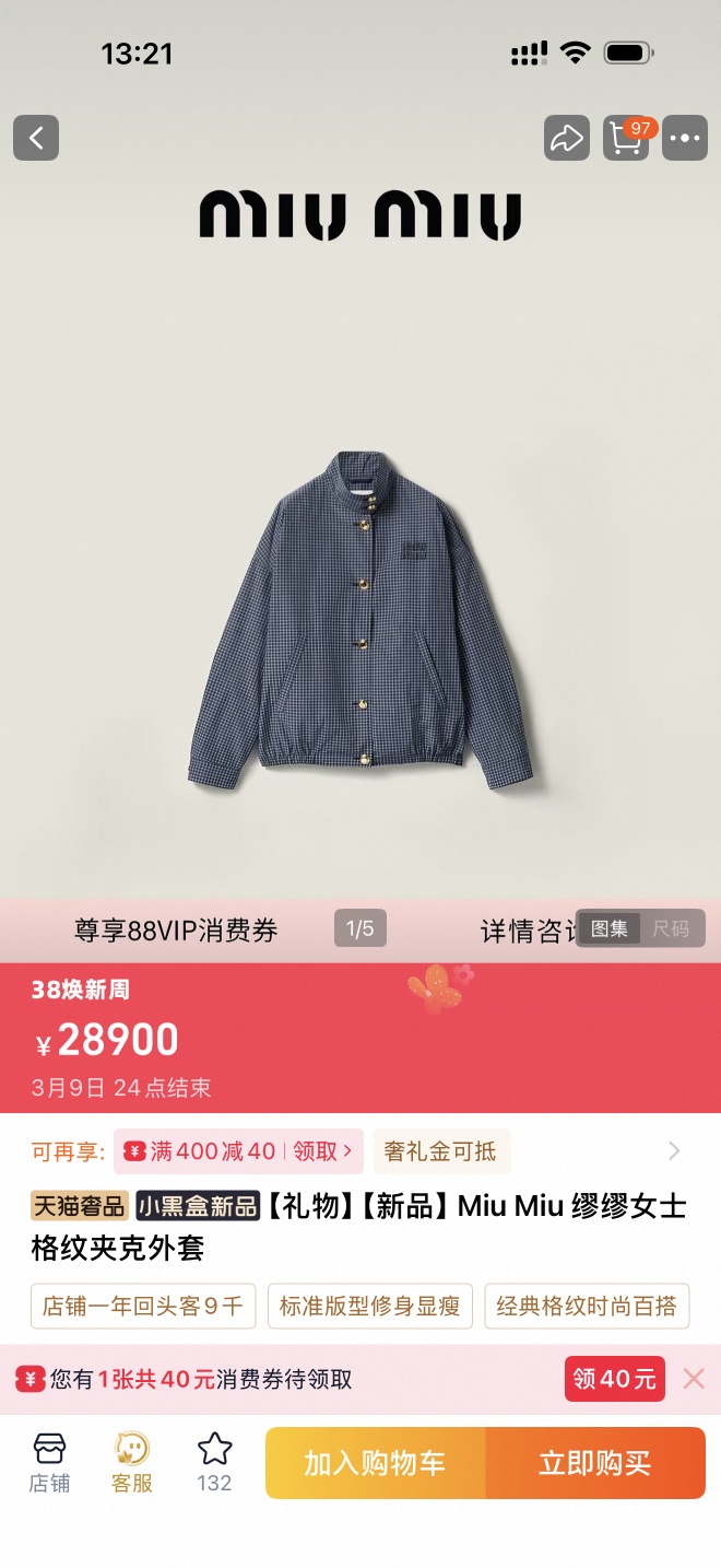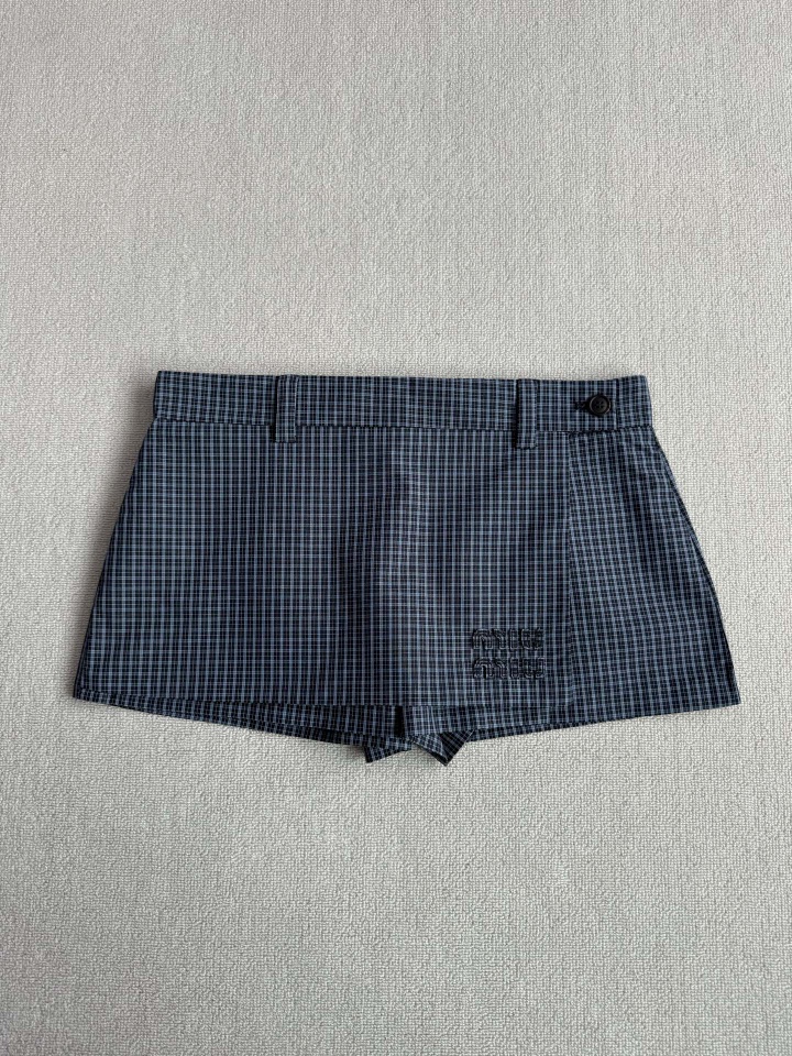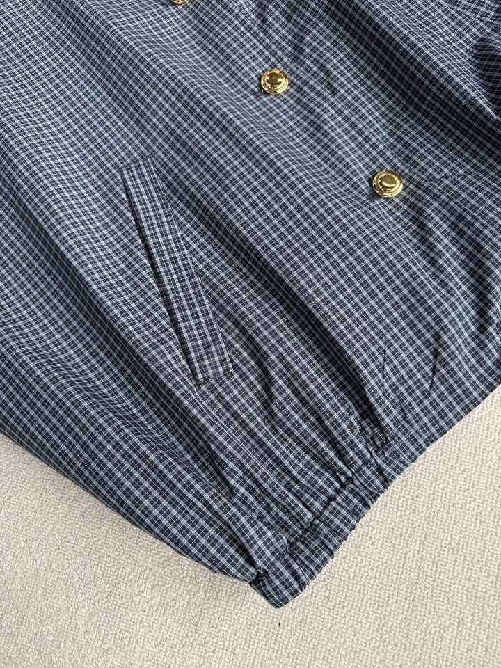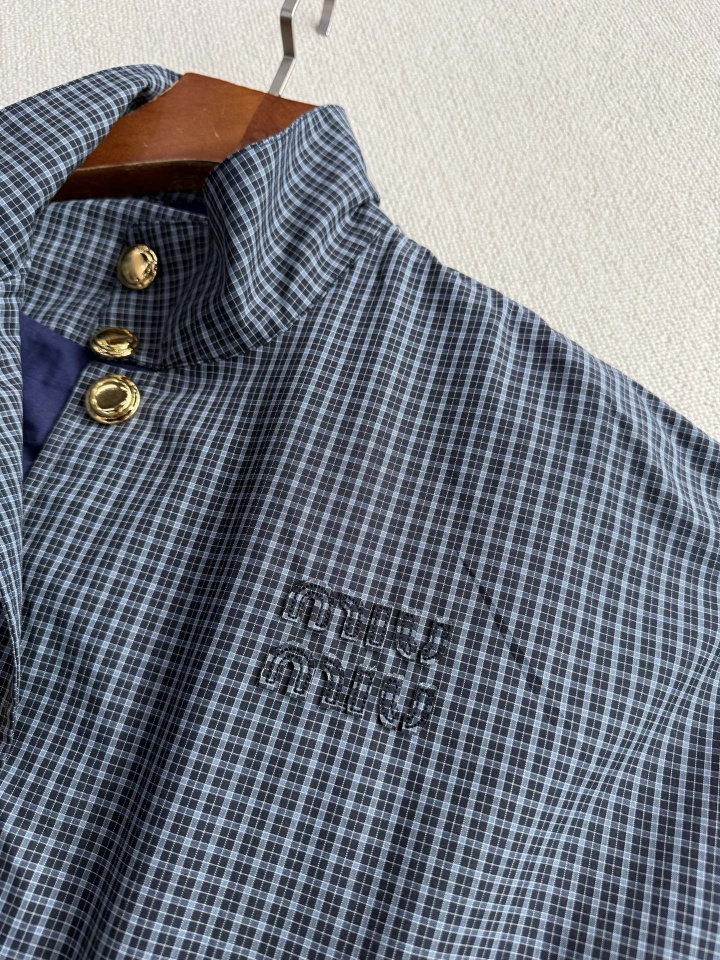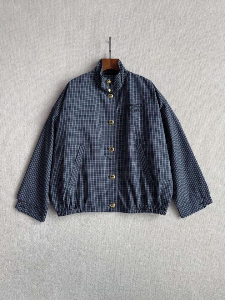 Miu 女士格纹夹克外套套装 这款夹克轻盈且充满动感,与经典格纹图案结合