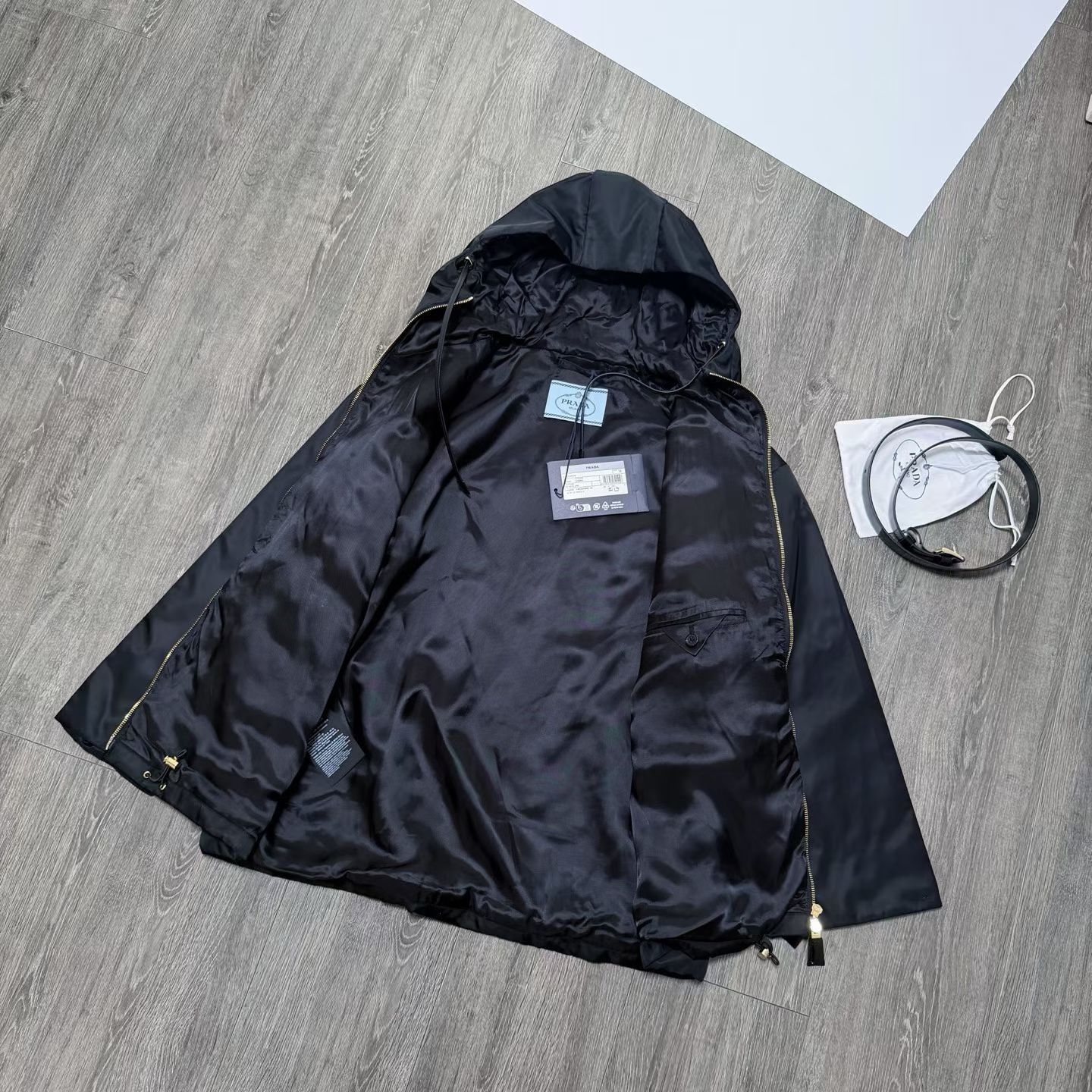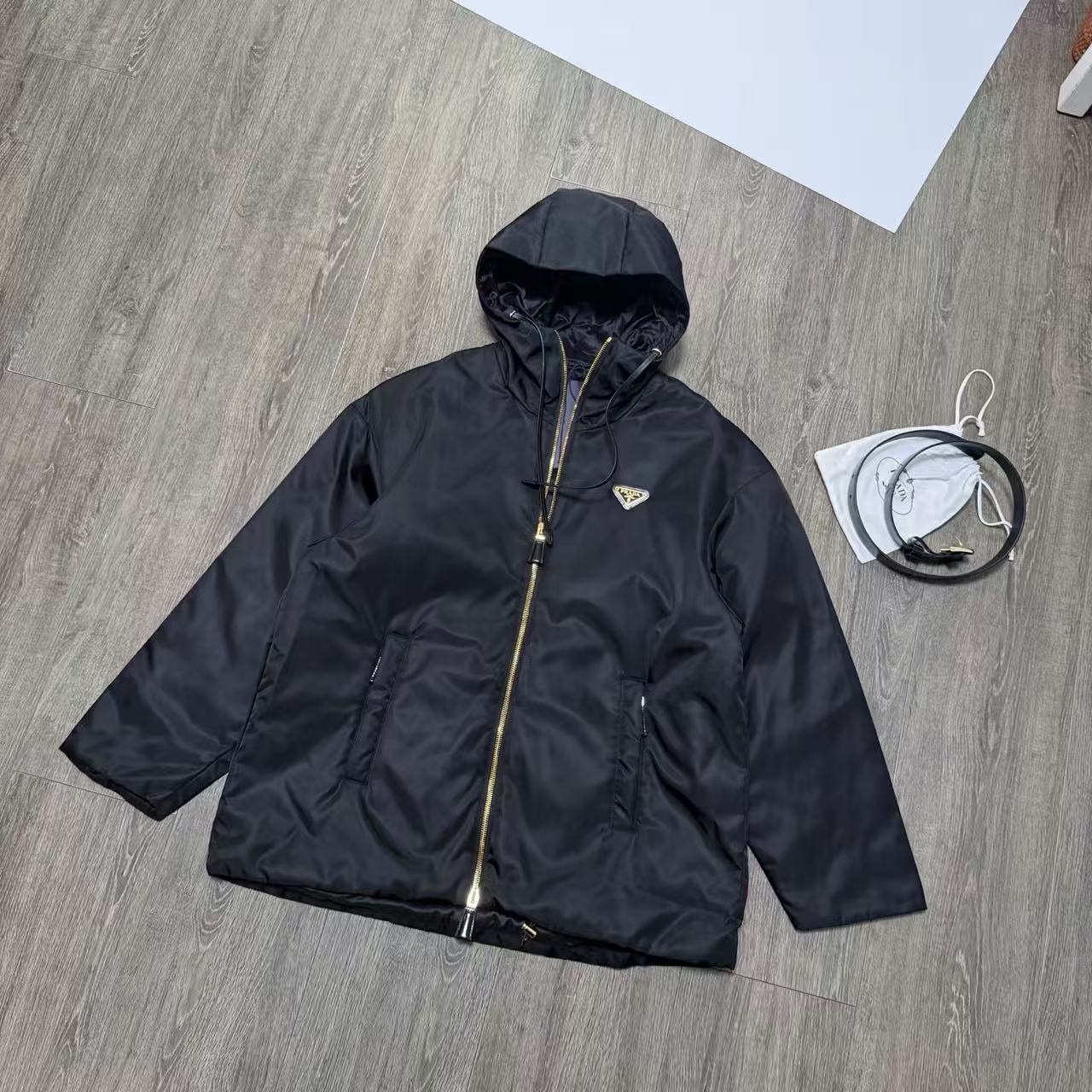 早春款PD薄棉垫层连帽束腰尼龙夹