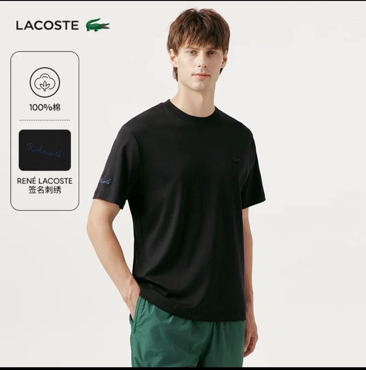 法鳄新款丝光男装圆领短袖客定高克