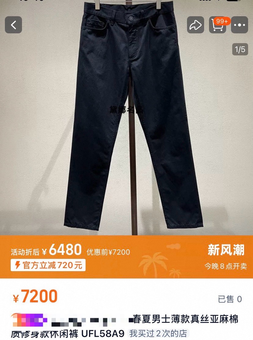 杰尼亚春夏款含真丝亚麻休闲裤客供