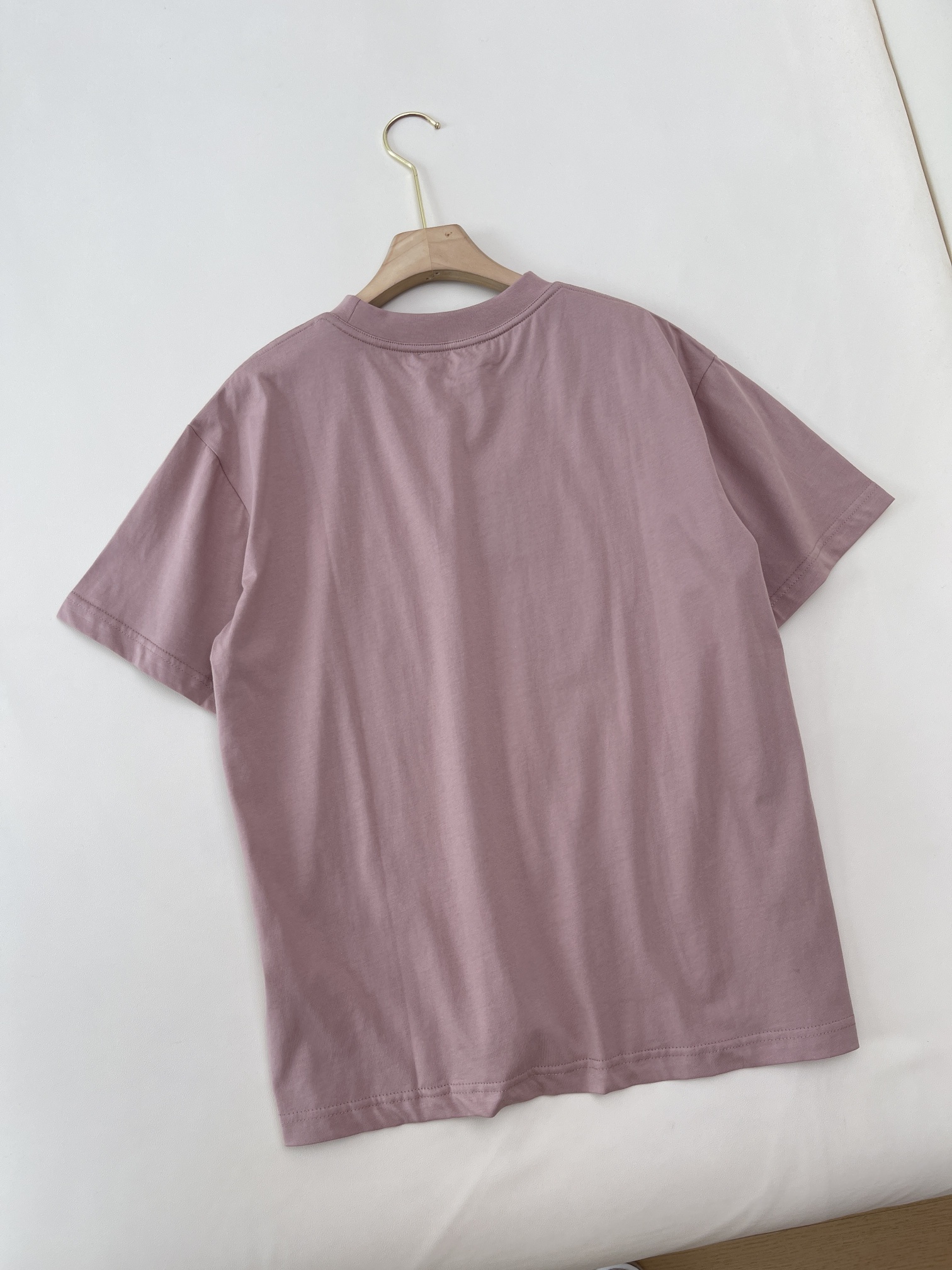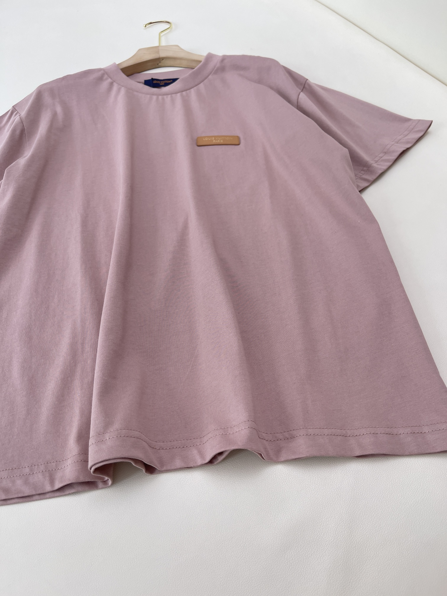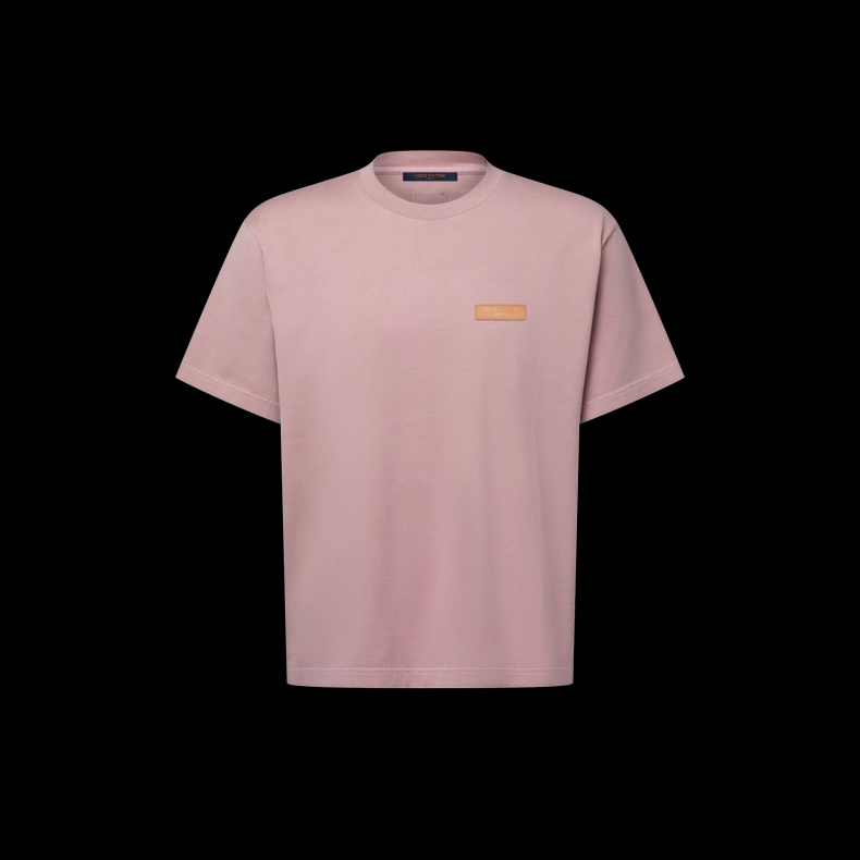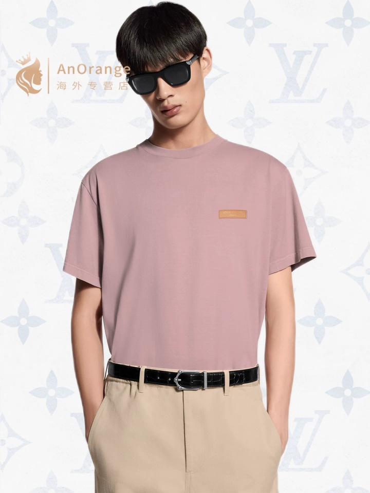 lv简约圆领皮标短袖T恤粉色手工缝制棉短袖