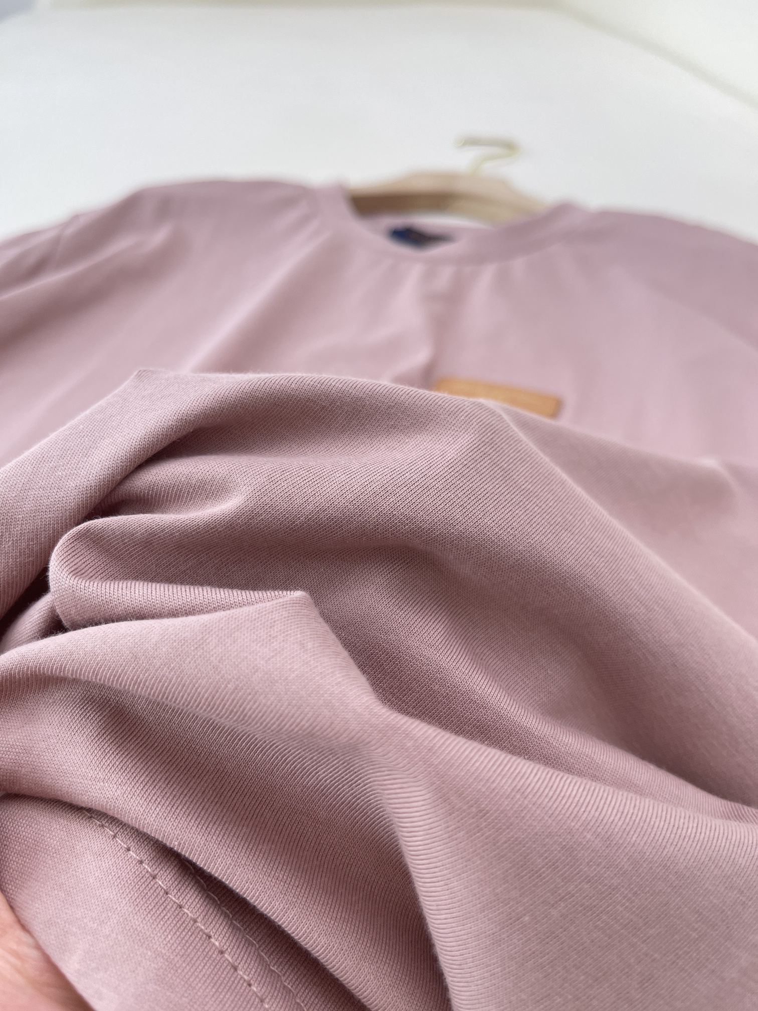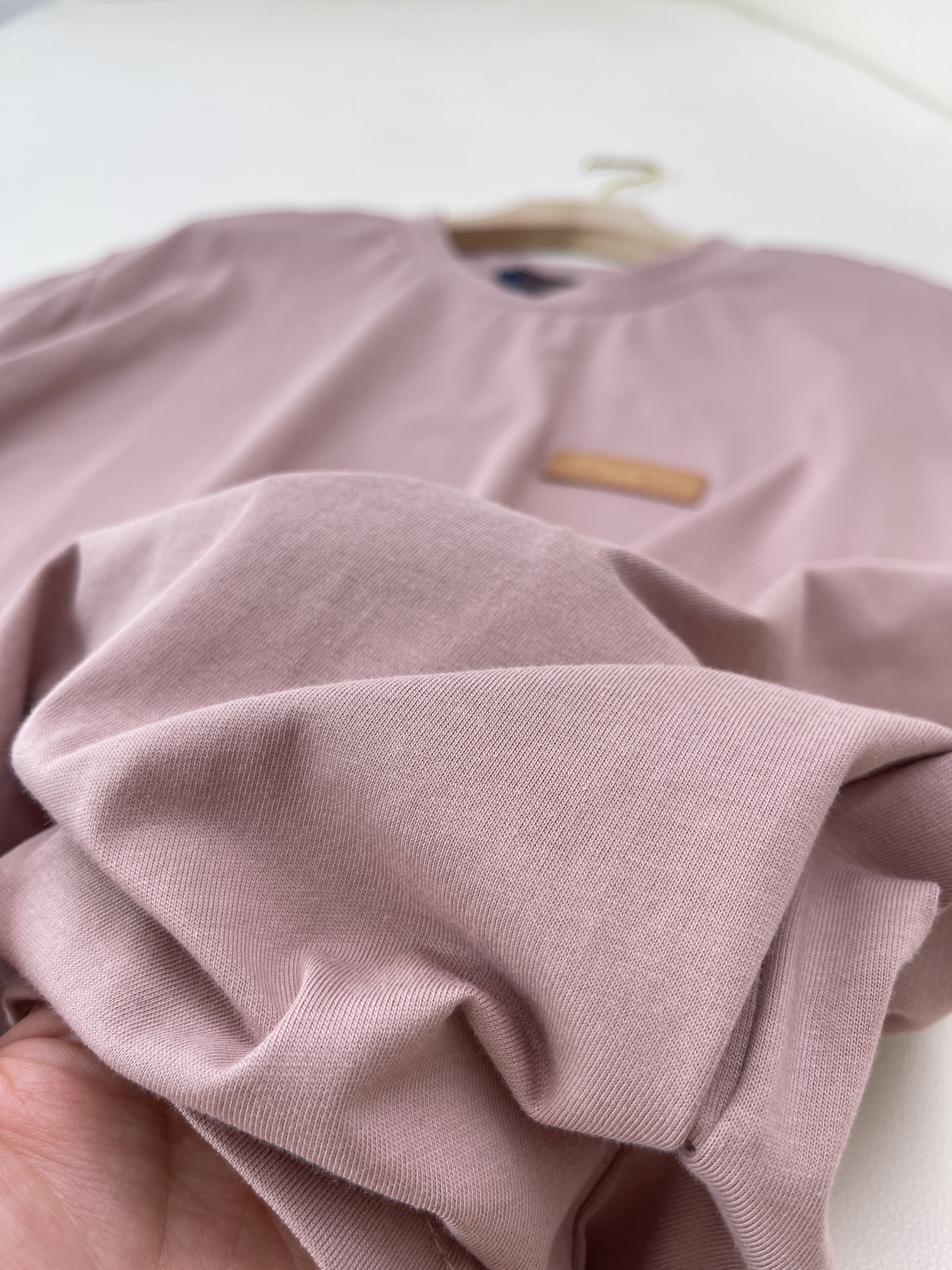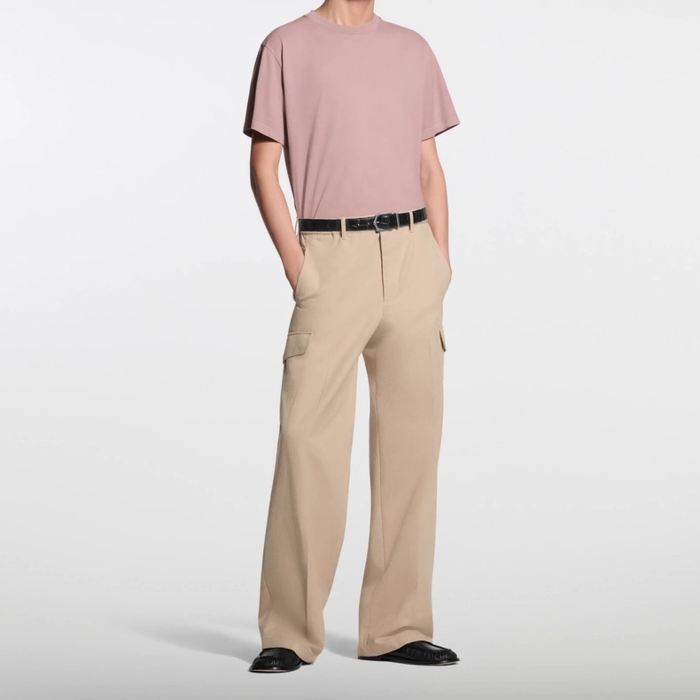 lv简约圆领皮标短袖T恤粉色手工缝制棉短袖