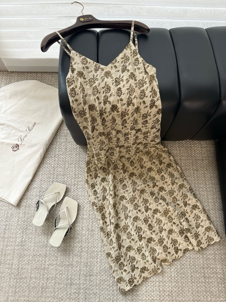 Dio*雏菊印花衬衫连衣裙 奶白色基底画布,