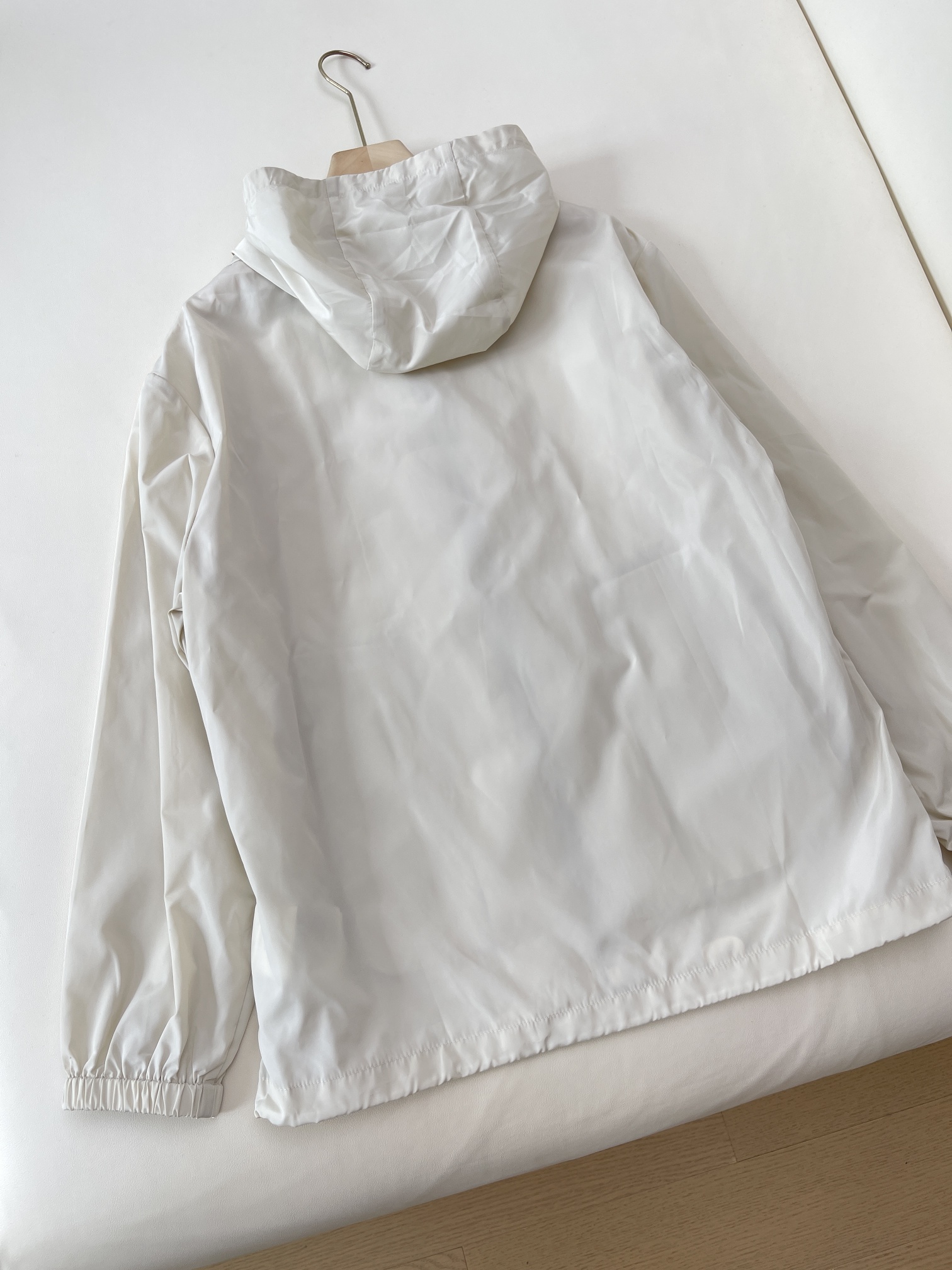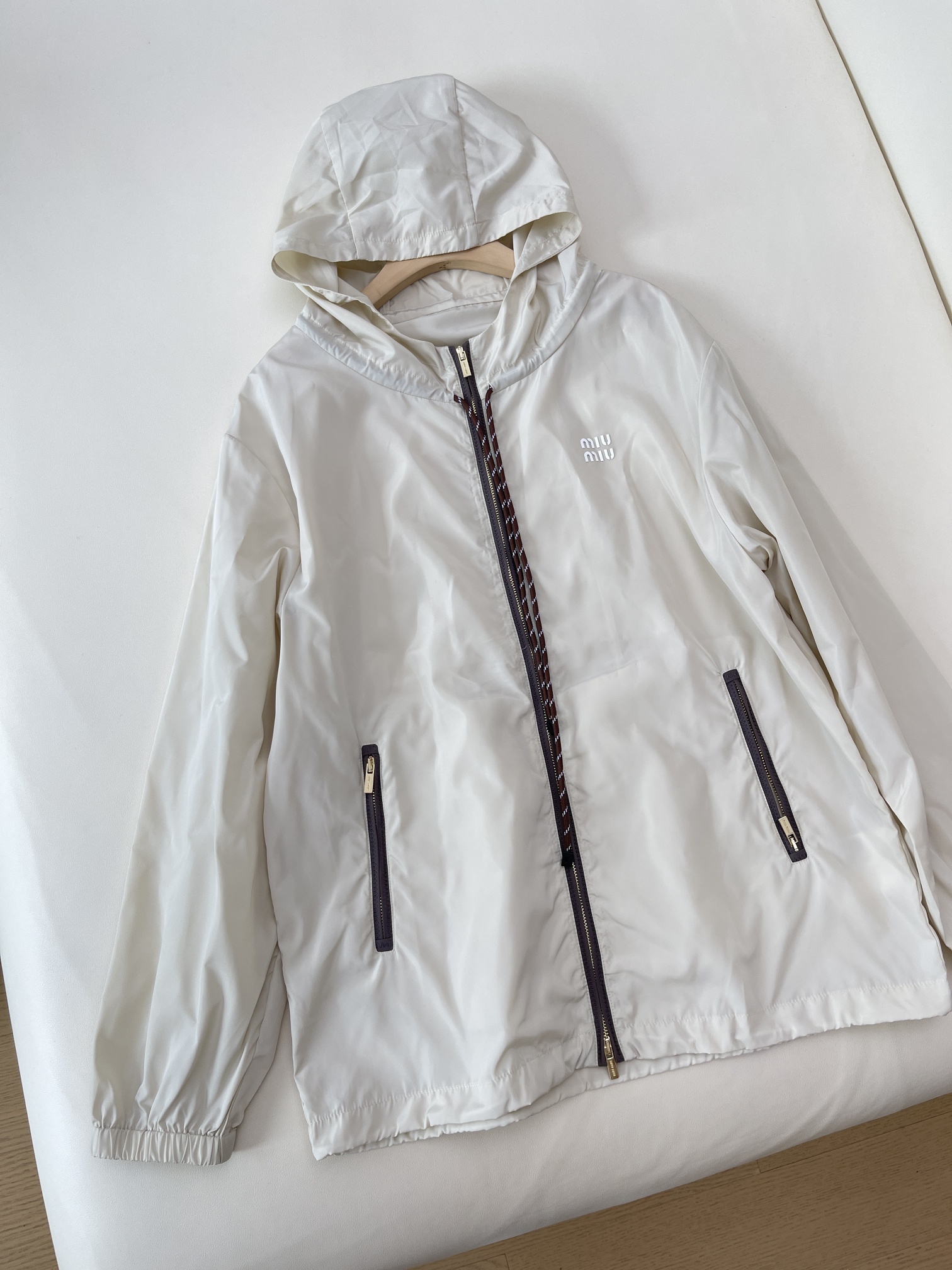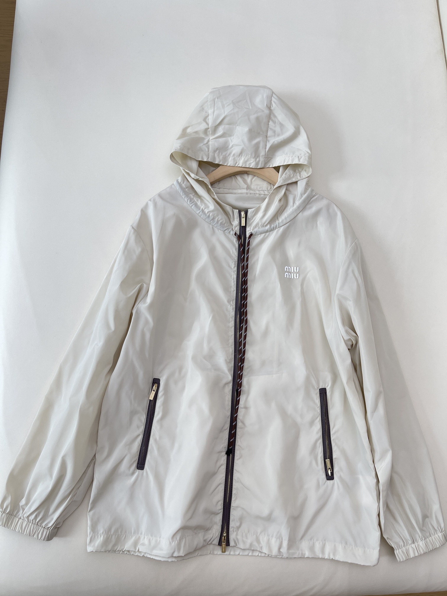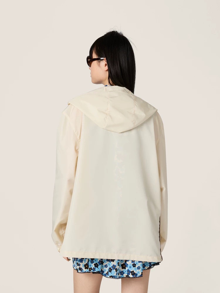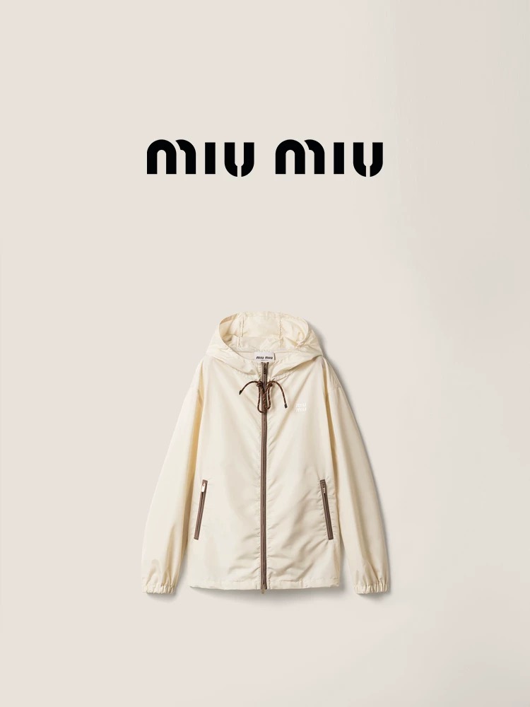 miu宽松抽绳撞色徽标连帽连帽风衣外套