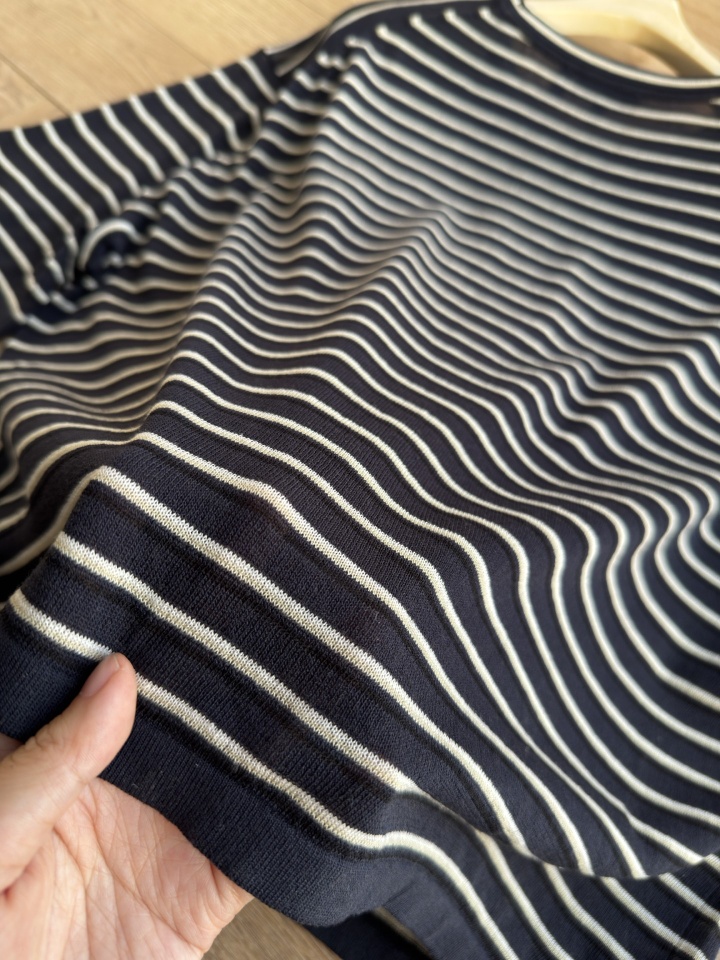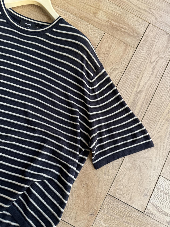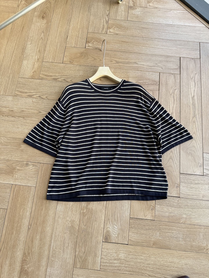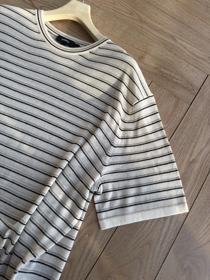 Theor女士条纹亚麻圆领短袖!这件太适合夏天了,清爽干净,又很实穿