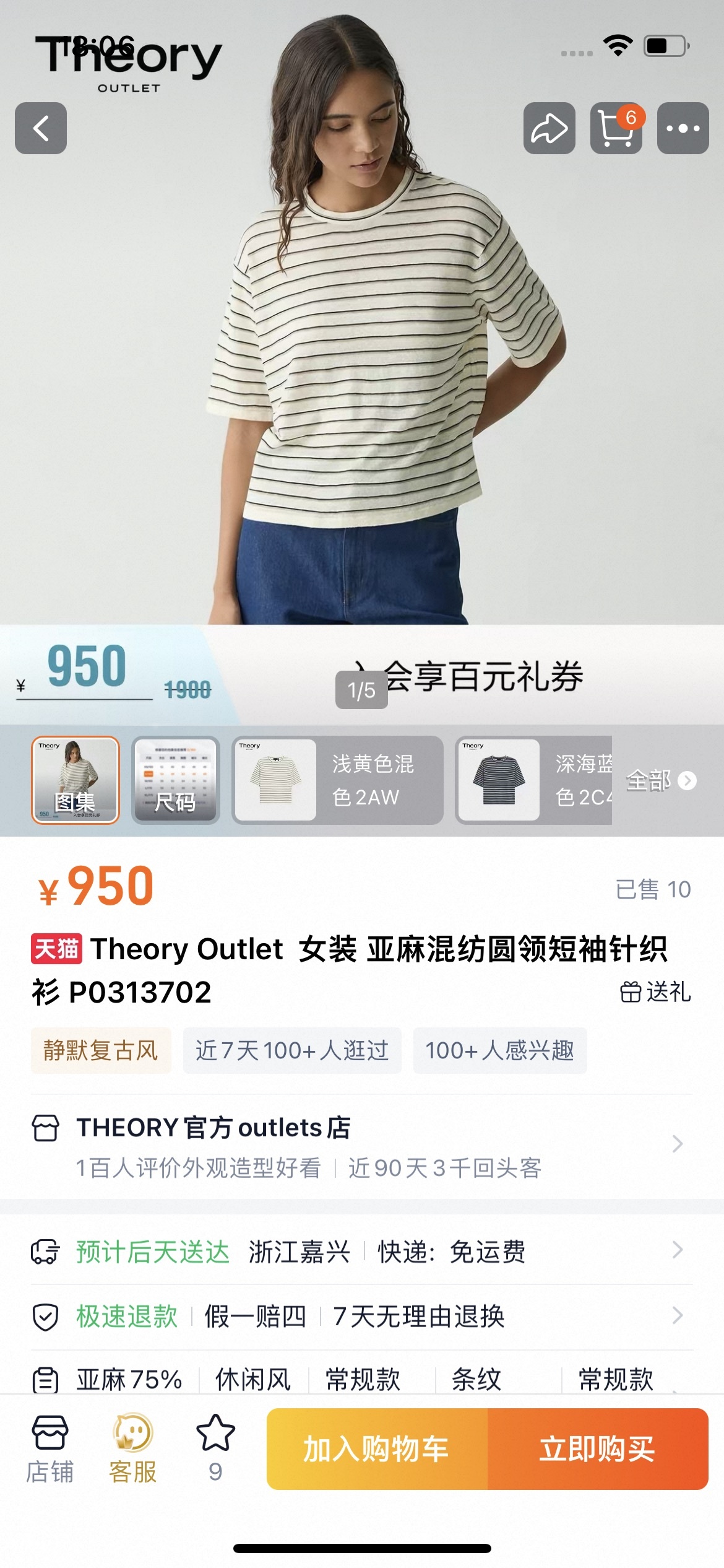 Theor女士条纹亚麻圆领短袖!这件太适合夏天了,清爽干 ...