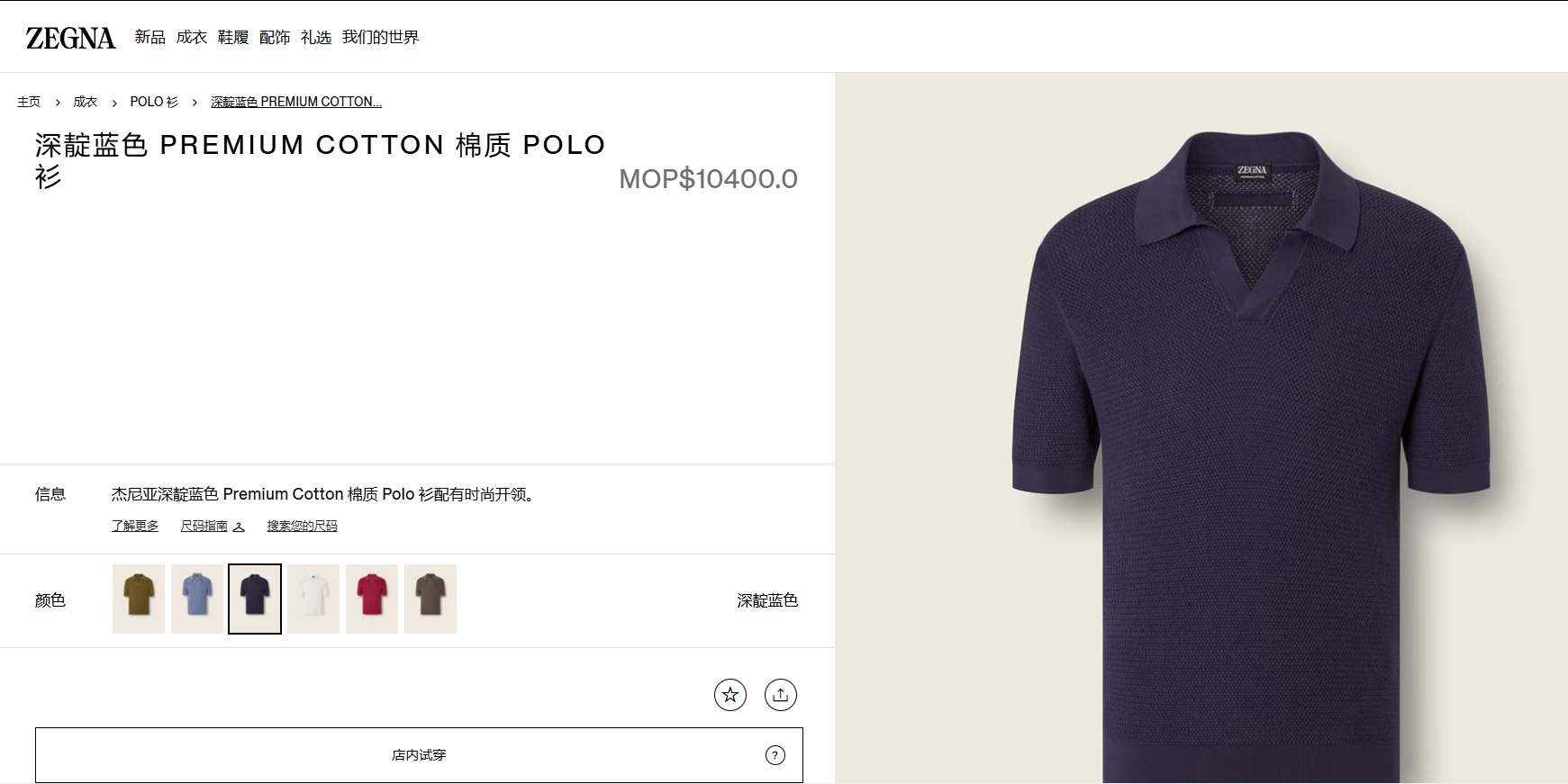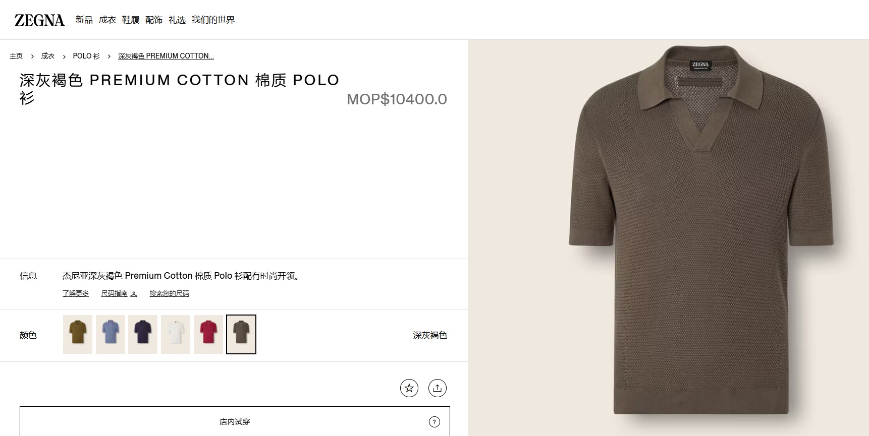 杰尼亚y单男士海鸥领polo衫短袖